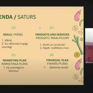 Sestdien, 27.novembrī Zemnieku Saeima Zoom platformā organizēja starptautisku pasākumu "YouCooperate biznesa plāni", kurā savas biznesa idejas prezentēja jaunieši no Itālijas, Rumānijas, Bulgārijas, Ungārijas un Latvijas. Es prezentēju mūsu biznesa plānu, pārstāvot gan skolu, gan Latviju. Vajadzēja pārvarēt bailes un nedrošību, uzstājoties tik lielas starptautiskas auditorijas priekšā. Negribu teikt, ka tas bija varonīgi, taču mans mazais darbs pārvērtās par lielu notikumu. Tas iedvesmoja projekta dalībniekus, kuri izstrādāja biznesa plānus, bet šoreiz neprezentēja. Gribu aicināt jauniešus pārvarēt sevi, iesaistīties, gūt jaunu pieredzi, pārstāvēt savu valsti! Kurš tad veidos mūsu nākotni , ja ne paši? Katrs mazais darbs veido mūsu nākotni. Esmu lepna par paveikto!