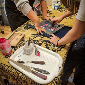 Tajā pašā dienā topošie dizaineru asistenti piedalījās radošā darbnīcā "Mākslas nospiedumi" Mākslas muzejā "Rīgas Birža". Nodarbības laikā jaunieši iepazinās ar vienu no tekstilmākslas tehnikām – sietspiedes auduma apdruku. Darbnīcas ievadu veidoja muzeja darbinieka stāstījums un piemēru demonstrācija, kam sekoja iespēja personalizēt līdzi paņemtu audumu ar muzeja kolekcijas meistardarbiem un ēkas arhitektūras elementiem.