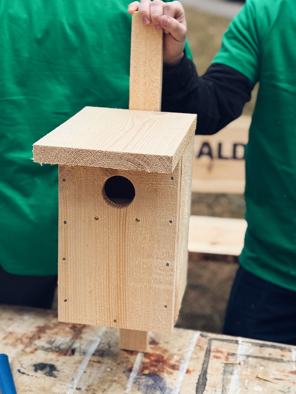Pieturvietā ikvienu interesentu sagaidīja mēbeļu galdnieku jaunieši un skolotāji, kuri soli pa solim palīdzēja nonākt līdz gatavam rezultātam - gatavam putnu būrītim. Dalībniekiem bija iespēja ne tikai apgūt jaunas prasmes, bet arī radīt noderīgu mājvietu putniem.